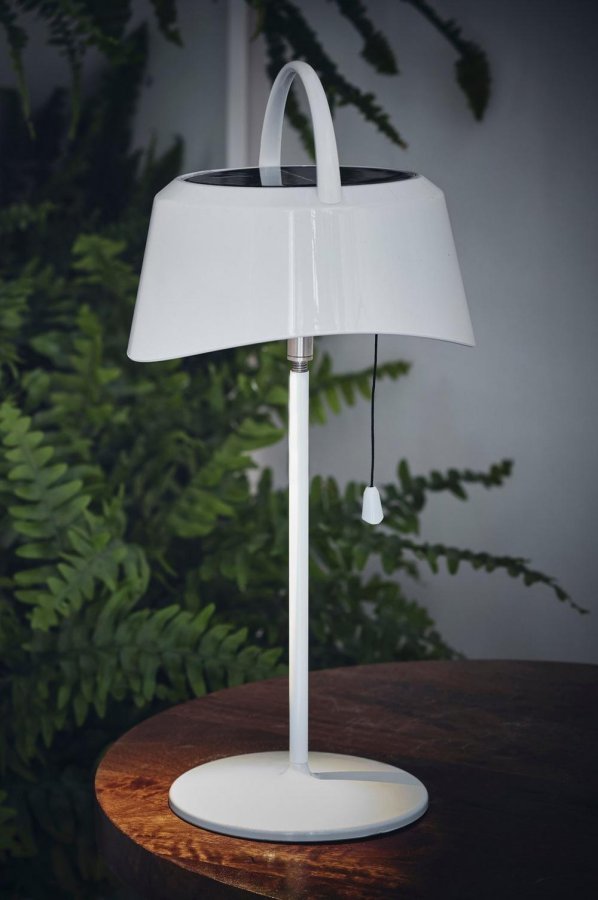 Pöytävalaisin, jonka sisäänrakennetut aurinkokennot antavat n. 4 tunnin paloajan pimeyden laskeutumisen jälkeen. Materiaali: Metallia. Koko: Korkeus 36 cm, ø 17,5 cm. Kuvaus: Aurinkokennoilla toimiva metallinen pöytävalaisin, jossa säädettävä varjostin. Lampunkanta/lamppu: LED. Vinkki: Oletko kiinnostunut uusista ulkokalusteista? Meillä on paljon tyylikkäitä ja kätevä vaihtoehtoja.