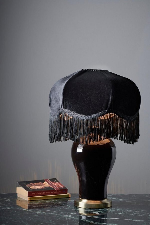 Näyttävä samettinen varjostin on nostalginen ja tuo mukanaan tuulahduksen 70-luvulta. Materiaali: Keramiikkaa ja kangasta. Koko: Korkeus 50 cm, varjostimen ø 32 cm. Kuvaus: Pöytävalaisin, jossa samettivarjostin ja hapsureuna. Lampunjalka lasitettua keramiikkaa, kullanvärinen metallipohja. Johdon pituus 1,5 m. Lamppu ei mukana. Lampunkanta/lamppu: 1 x E14, enintään 25 W:n hehkulamppu tai enintään 5 W:n energiansäästölamppu. Vinkki: Pidätkö hapsuista? Tutustu FRISSE-kattovalaisimeen, jossa on myös hapsureuna.