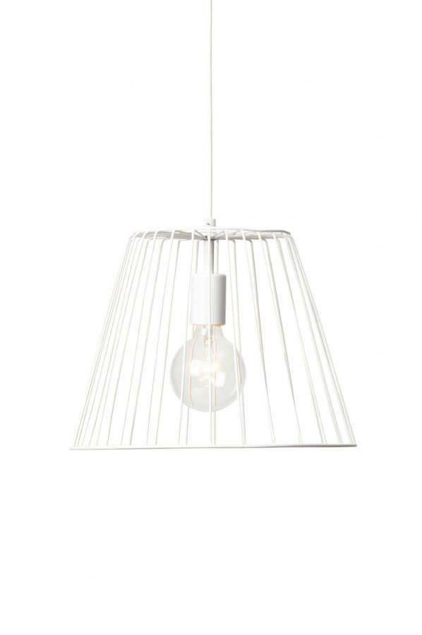 Maalattua metallia. Korkeus 27 cm, ø 35 cm. Johdon pituus 120 cm. E27, enintään 60 W.