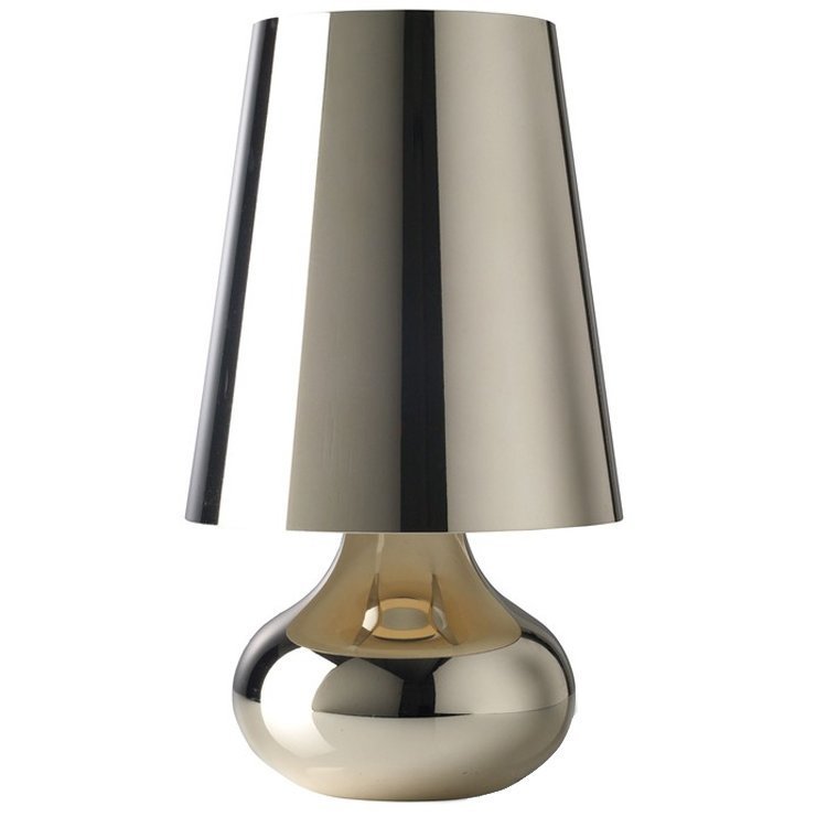 Kartellin Cindy-pöytävalaisin, suunnittelu Ferruccio Laviani. Cindy on tyypillinen 70-luvun valaisin modernilla ilmeellä. Sileä ja kiiltävä pinta hohtaa kauniisti ja saa värit loistamaan kauniisti. Saatavana useassa eri metallivärissä. Cindy on varustettu energiansäästölampulla.