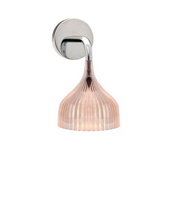 Design: Ferruccio Laviani for kartell. Konsepti: E´ Seinävalaisin on muotoilultaan yksinkertainen ja olennaiseen keskittyvä. Valaisinta on saatavilla seinävalaisimena sekä riippuvalaisimena. E’ seinävalaisimen varjostin on valmistettu laskostetusta polykarbonaatista, jossa on 11 cm kromattu varsi.