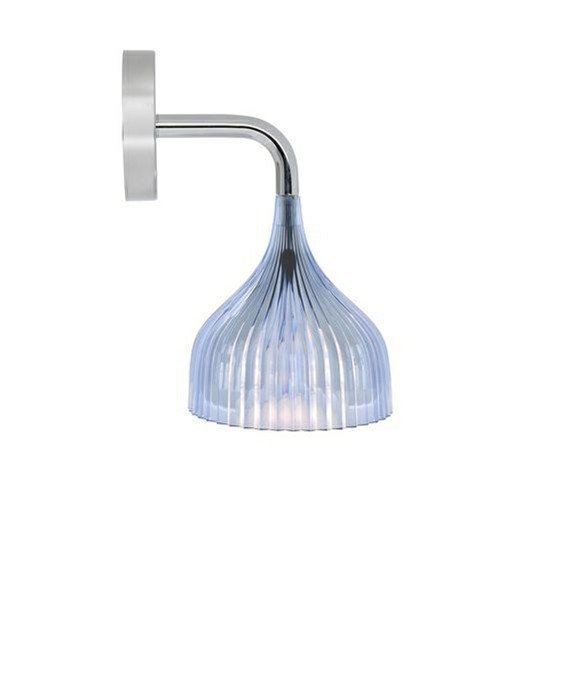 Design: Ferruccio Laviani for kartell. Konsepti: E´ Seinävalaisin on muotoilultaan yksinkertainen ja olennaiseen keskittyvä. Valaisinta on saatavilla seinävalaisimena sekä riippuvalaisimena. E’ seinävalaisimen varjostin on valmistettu laskostetusta polykarbonaatista, jossa on 11 cm kromattu varsi.