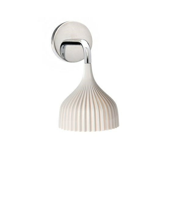 Design: Ferruccio Laviani for kartell. Konsepti: E´ Seinävalaisin on muotoilultaan yksinkertainen ja olennaiseen keskittyvä. Valaisinta on saatavilla seinävalaisimena sekä riippuvalaisimena. E’ seinävalaisimen varjostin on valmistettu laskostetusta polykarbonaatista, jossa on 11 cm kromattu varsi.