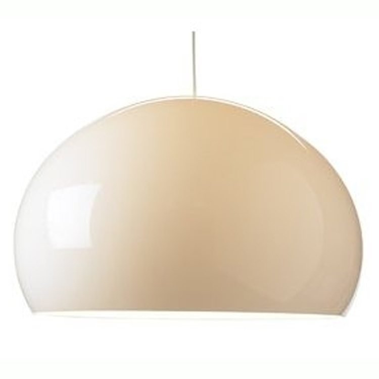 FL/Y-kattovalaisin Kartellilta, suunnittelu Ferruccio Laviani. Kartellin FL/Y on kaunis valaisin, joka sopii yhtä hyvin sekä ruokasaliin, että olohuoneeseenkin. Jos ruokapöytä on suuri, voidaan sen ylle ripustaa kaksi FL/Y-valaisinta. Valkoinen varjostin päästää lävitseen jonkin verran valoa, toisin kuin musta, jonka valo kohdistuu ainoastaan alaspäin. Sähköjohto värittömällä muovikuorella. Kattokuppi samanvärinen, kuin varjostin. Valonlähde toimitetaan valaisimen mukana.