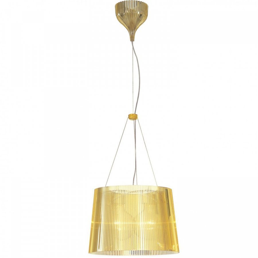G-kattolamppu Kartellilta, suunnittelu Ferruccio Laviani. Pliseerattu varjostin luo vaikutelman, etä valo tulisi useammasta, kuin yhdestä valonlähteestä. Sopii niin keittiöön, kuin olohuoneeseenkin. Virtajohto voidaan säätää 45-230 cm pitkäksi. Valonlähde seuraa mukana.
