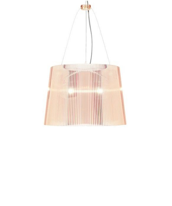 Design: Ferruccio Laviani for kartell. Konsepti: GE -riippuvalaisin ripustetaan kattoon käyttäen koristeltua polykarbonaatista valmistettua kattokupua, joka muistuttaa antiikkisia venetsialaisia kattokruunuja. Se toimitetaan halkaisijaltaan 37 senttimetrin kokoisen kokonaan polykarbonaatista valmistetun laskostetun varjostimen kanssa. GE -riippuvalaisinta on saatavilla kahtena eri versiona. Ensimmäinen tuo mukanaan läpinäkyvyyden tunteen ja on saatavilla pehmeissä ja hienostuneissa väreissä. Toinen tarjoaa klassista vaikutelmaa joko mustana tai valkoisena yhdistettynä kromiversion kultaiseen väriin. Johto on säädettävissä välillä 450-2300 mm.