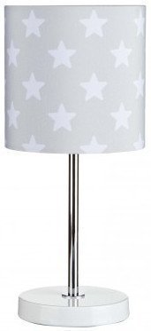 Kids Conceptin pöytävalaisin, jossa valkoisia tähtiä harmaalla taustalla. Varjostimen koko: 15 x 15 cm Jalan korkeus: 33 cm