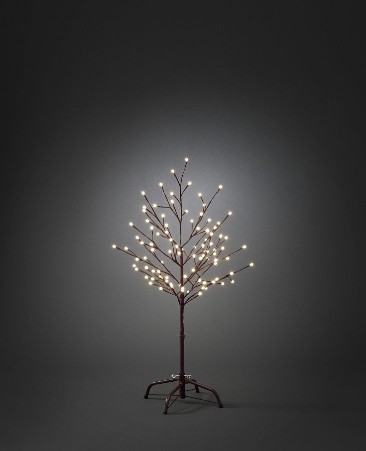 LED-koristepuu ulko- ja sisäkäyttöön. 1 m korkea ruskea puu, jossa 96 lämmin valkoista