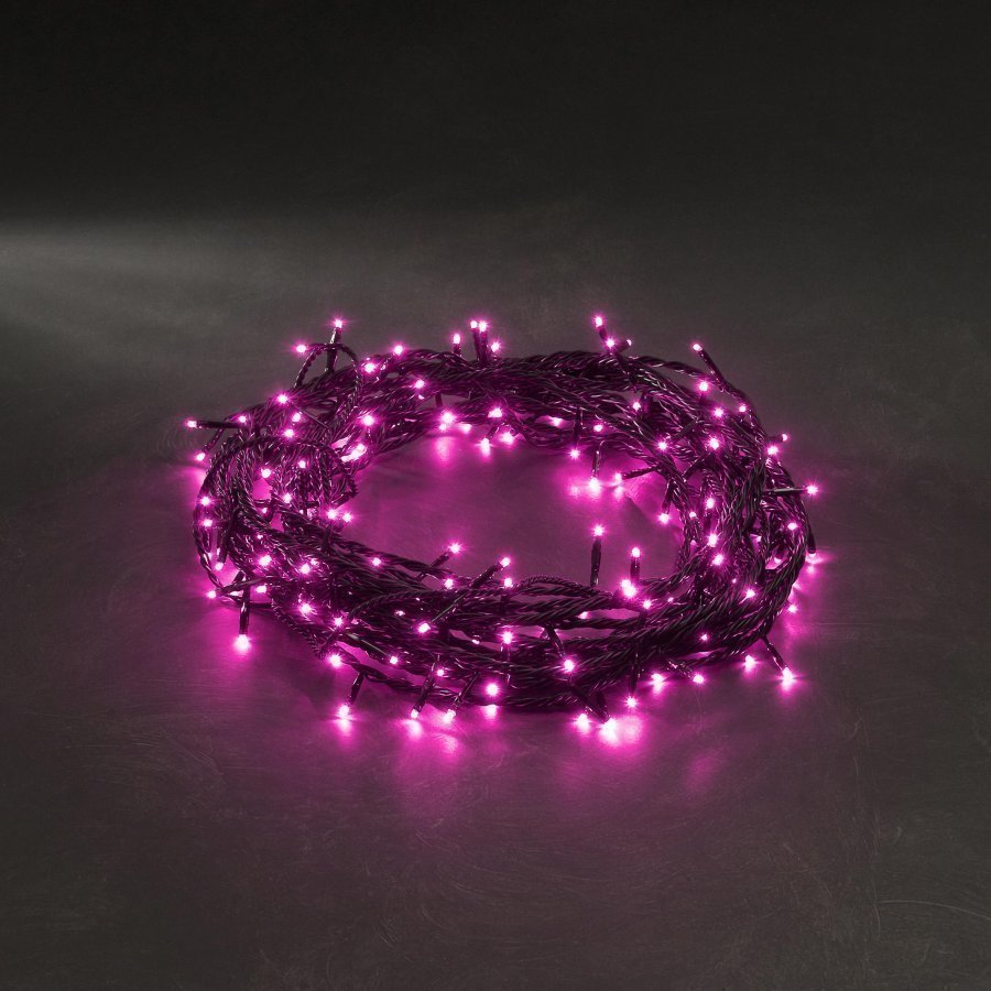 LED-valosarja ulko- ja sisäkäyttön, muuntaja IP44. Monivaheinen vilkkutoiminto, 120 LED-poltinta tummassa kaapelissa. Liitosjohto 5 m.