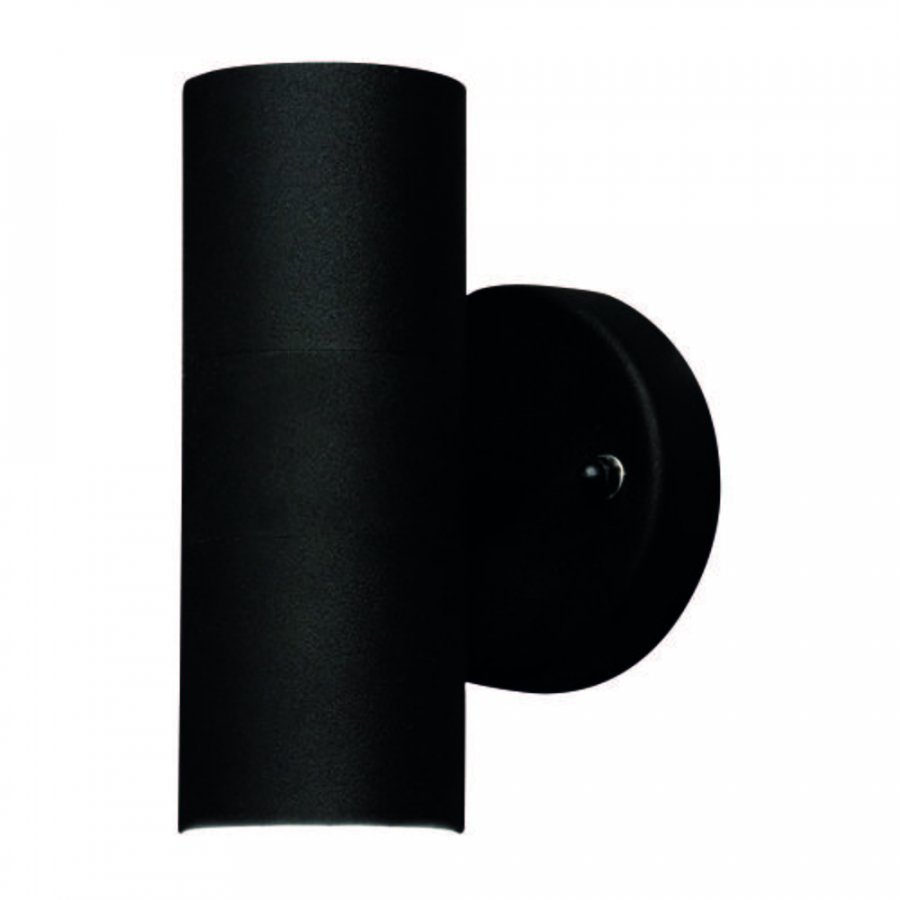 Ylös- ja alaspäin valaiseva Modern-sarjan harmaa Modena-seinävalaisin ulkokäyttöön. Runko valmistettu alumiinista, kupu on kirkasta lasia/muovia. Valaisimessa on suojalasit ylä- ja alavaloille. – Teho: 2×35 W – Jännite: 230 V – Lamppukanta: GU10 – Kotelointiluokka: IP44 – Väri: Musta