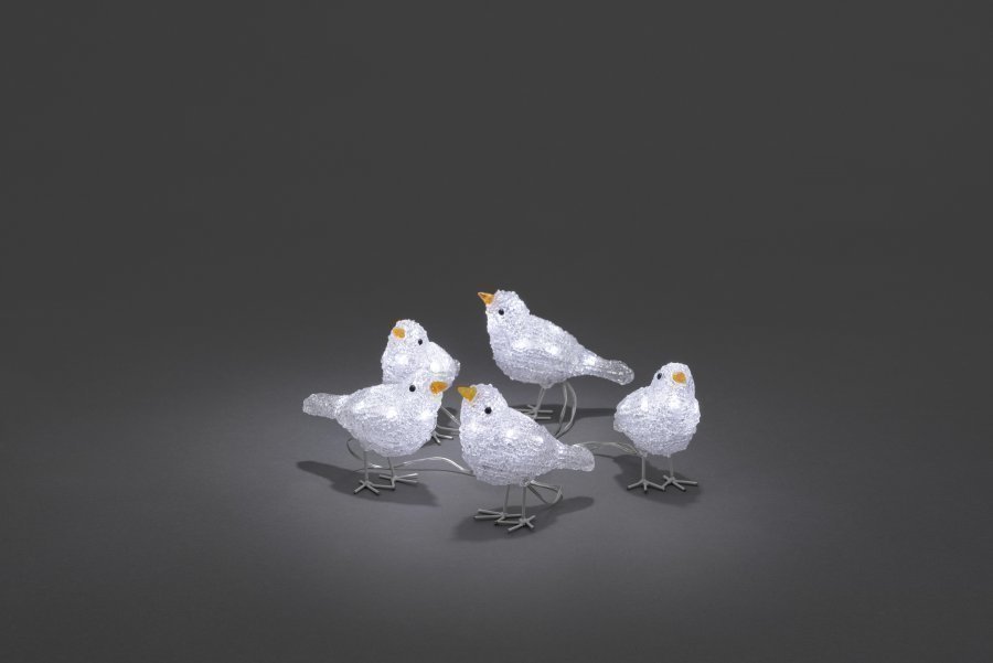 Valosarja Pikkulinnut 5 kpl, 40 valkoista LED-lamppua, ulkokäyttöön, jouluvalon liitosjohto 5m, muuntaja IP44.