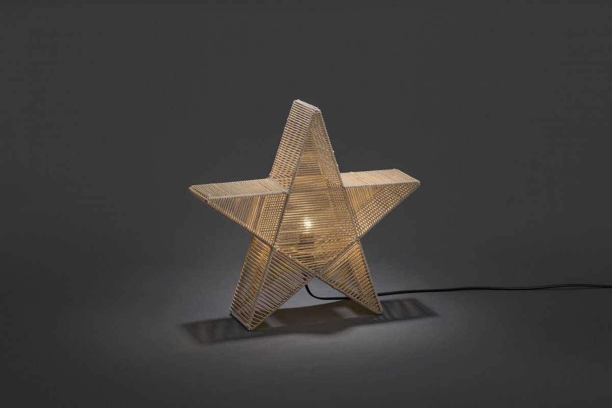Näyttävässä Konstmide-pöytätähdessä on metallikehikko ja beigenvärinen puuvillanaru. Tilaa!