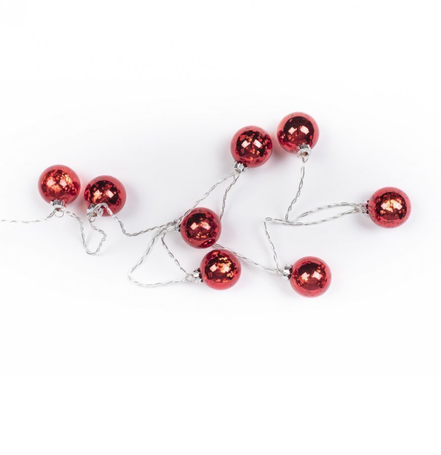 Paristokäyttöisessä valosarjassa on kahdeksan lämpimänvalkoista LED-valoa. Lasikupujen halkaisija on 4 cm. Sarjan kokonaispituus on 1,35 metriä. Paristot (2 x AA) eivät sisälly pakkaukseen. Sarja on tarkoitettu sisäkäyttöön. Värivaihtoehtoina on hopea, kulta ja punainen. Huom! Väriä ei voi valita verkkokaupasta tilattaessa, toimitus varastotilanteen mukaan.
