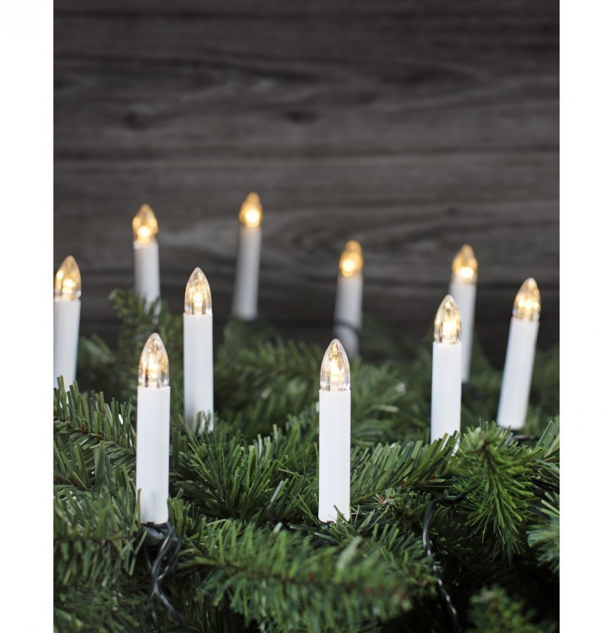 Verkkovirralla toimiva valosarja joulukuuseen, sisäkäyttöön. Lämpimänvalkoiset LED-valot on sijoitettu 7,5 metrin matkalle 50 cm:n välein, lisäksi sarjassa on 3-metrinen lähtöjohto.
