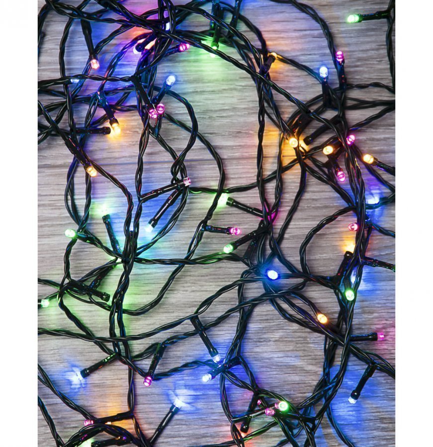 Kotikulta LED-valosarja sisältää 240 moniväristä LED-valoa (punainen, vihreä, sininen, keltainen). Sopii sekä sisä- että ulkokäyttöön. Vihreän lähtöjohdon pituus 5 m. Polttimoiden väli 10 cm. Kokonaispituus 28,9 m. Muuntaja ulko- ja sisäkäyttöön IP44, 31 V, 3,6 VA. Pakattu kätevään säilytysrasiaan.