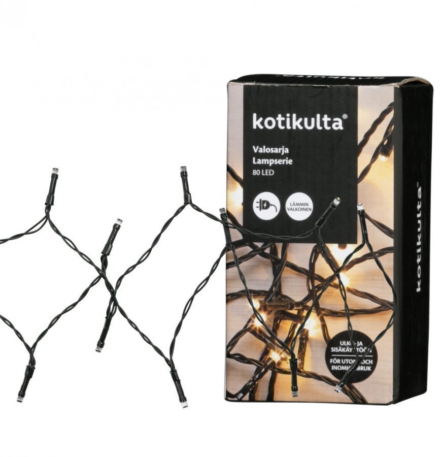 Lämpimän valkoiset LED-valot on sijoitettu 10 cm:n välein. Valosarjan kokonaispituus on 12,9 m, verkkolaitteesta alkaen ensimmäiset 5 m on pelkkää liitosjohtoa. Verkkolaite on roiskevesisuojattu (suojausluokka IP44), joten valosarja sopii myös ulkokäyttöön.