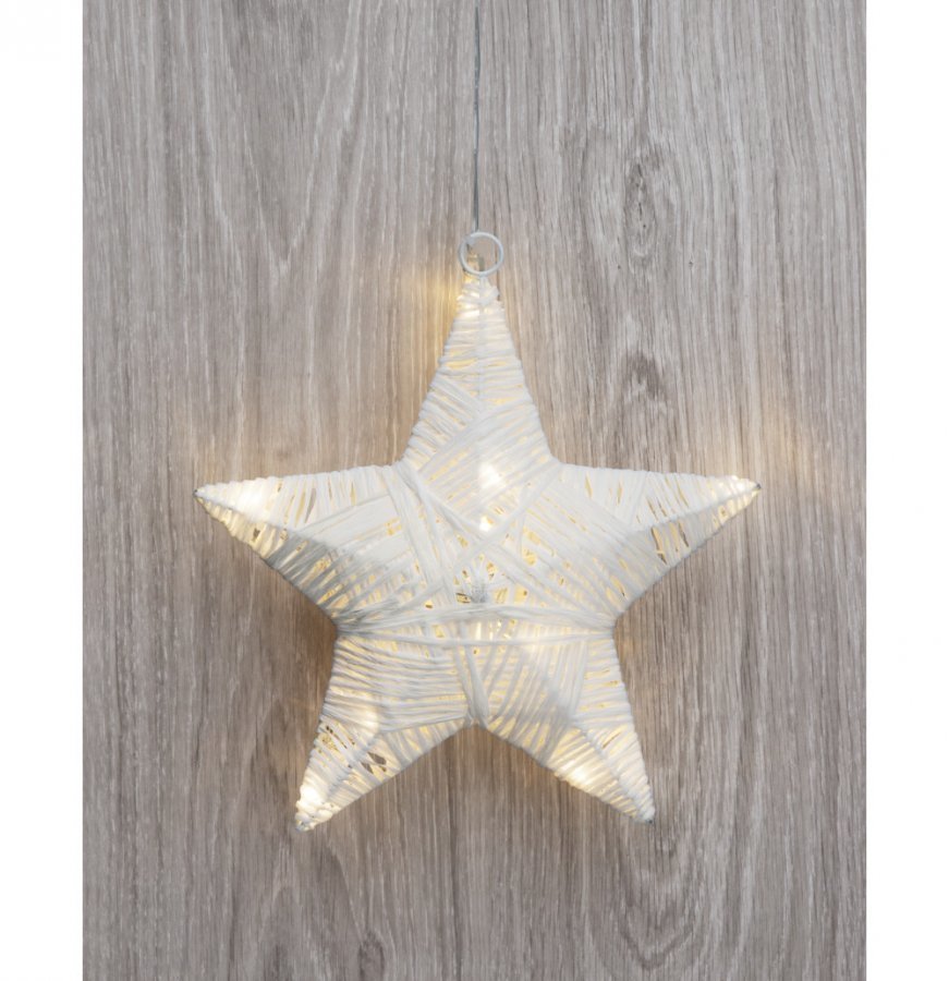 Paristokäyttöisessä ripustettavassa koristevalossa on 10 lämpimänvalkoista LED:iä. Voit käyttää valoa sekä on/off-kytkimellä että ajastimella. Ajastinta käytettäessä valot syttyvät aina 18 tunnin välein ja palavat 6 tuntia kerrallaan. Koristevalo toimii kolmella AA-paristolla (paristot eivät sisälly pakkaukseen). Mitat ( l x k): sydän 21 x 20 cm, tähti 26 x 24,5 cm, johto paristorasiasta valaisimeen 30 cm. Ripustuslenkki valaisimessa. Sisäkäyttöön. Huom! Valaisimen mallia ei voi valita verkk. . .