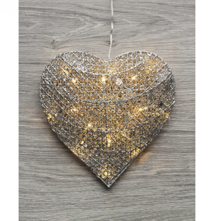 Sydämen sisältä tuikkivat LED:it antavat lämpimänvalkoista valoa. Verkkovirralla toimiva valaisin on tarkoitettu vain sisäkäyttöön. Sydämen korkeus on 25 cm. Läpinäkyvä virtajohto, pituus 5 m. Kokonaisteho 0,336 W. Muuntaja sisäkäyttöön IP 20, 3,5 V, 1,2 VA. Mukana ripustuskoukku.