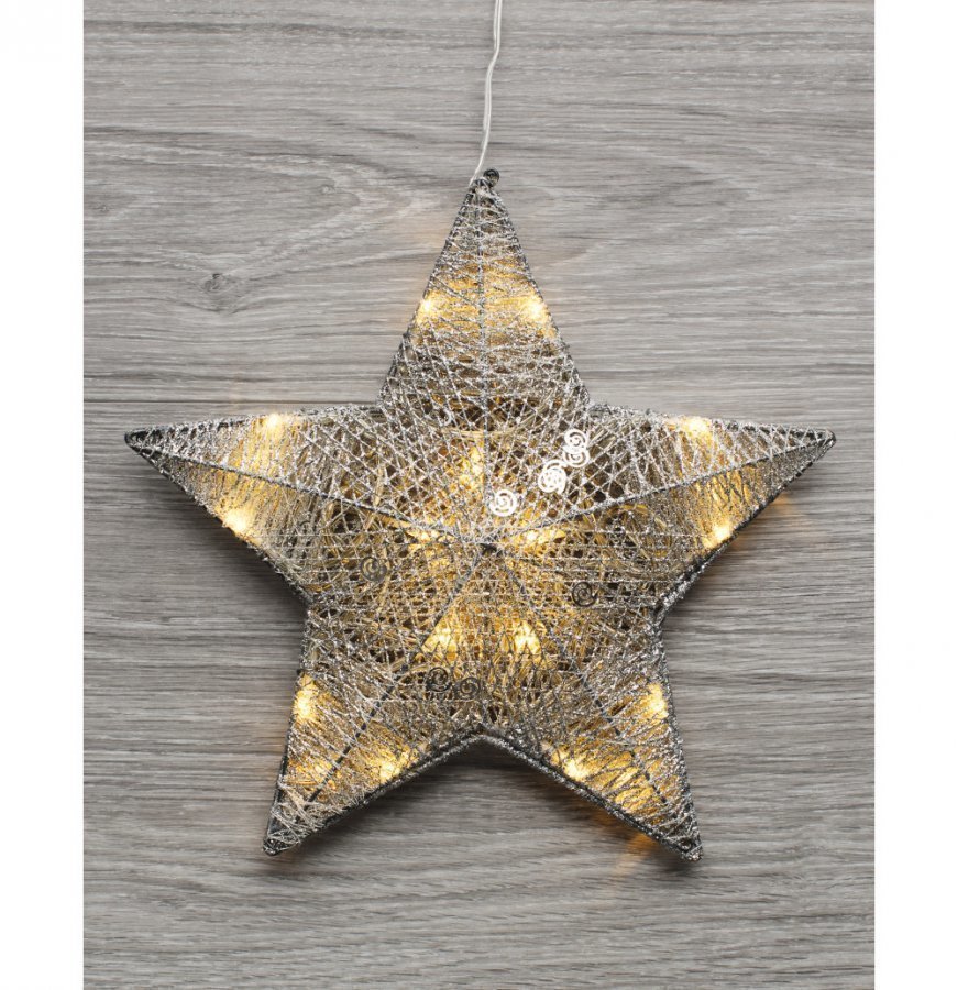 Tähden sisältä tuikkivat LED:it antavat lämpimänvalkoista valoa. Verkkovirralla toimiva valaisin on tarkoitettu vain sisäkäyttöön. Läpinäkyvä virtajohto, pituus 5 m. Mukana ripustuskoukku.
