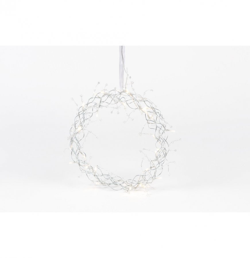 Valokranssin lämpimänvalkoisille LED-valoille antaa lisäloistetta 84 kirkasta koristehelmeä. Toimii verkkovirralla, johdon pituus 5 m. Mukana ripustusnauha ja -koukku. Sisäkäyttöön.