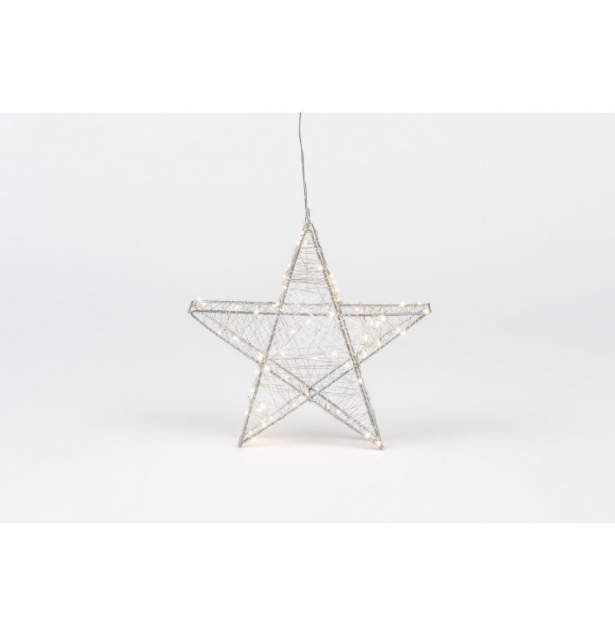 Verkkovirralla toimivassa valolangalla päällystetyssä tähdessä on 60 lämpimänvalkoista LED:iä. Tähden halkaisija 30cm, läpinäkyvän virtajohdon pituus 5 m. Sisäkäyttöön.