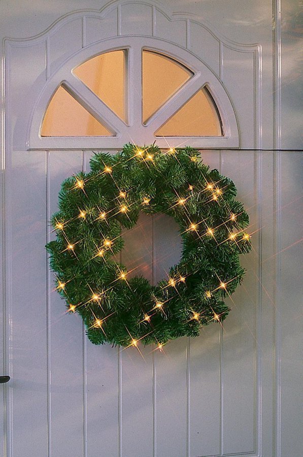 Sido punainen silkkinauha kranssin ympärille joulutyylin viimeistelemiseksi. Materiaali: Muovia. Koko: ø 30 cm. Kuvaus: Muovinen kranssi, jossa 20 LED-valoa (ei voi vaihtaa). Ulkokäyttöön. Johto 3 m. Vinkki: Vihreä kranssi, jota voi käyttää luonnollisen värisenä tai koristella suosikkikoristeillasi.