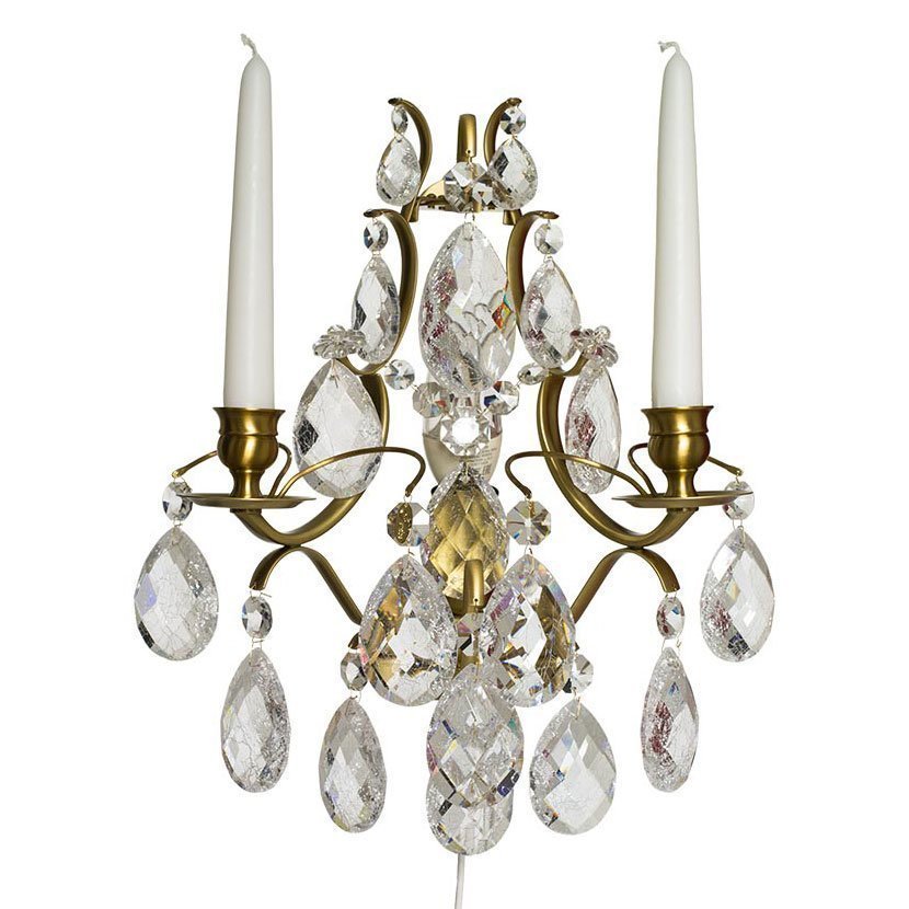 Yhdistä kaunis Krebs kristallikruunu usemmalla samantyylisellä kristallilampetilla. Löydät täältä monia tyylikkäitä ja koristeellisia barokkilampetteja, joihin voi laittaa eläviä kynttilöitä ylellisen tunnelman ja kauniin valaistuksen luomiseksi. Näillä ajattomilla seinälampeteilla voit kohottaa minkä tahansa huoneen ilmettä. 2-haarainen kynttiläkruunu. Pintakäsittely: cognac. 1 E-14 lampunpidike 40W. Käsinhiotut prismat 1A-laatu. Leveys: 32 cm. Korkeus: 36 cm. Paino: 2 kg. S/CE-merkitty. Hehkulamput eivät sisälly!.