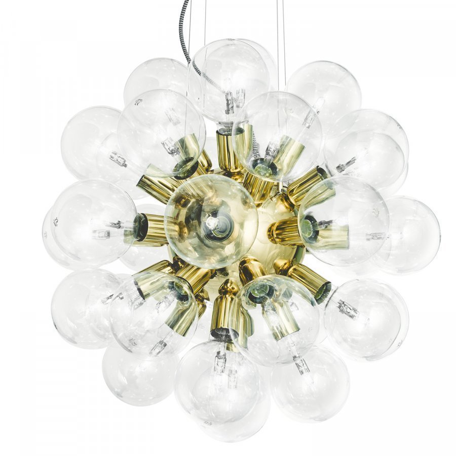 De Lux retrovalaisimen on suunnitellut Thomas Krebs. Valaisimen ydin on kiiltävä messinkiä ja sitä ympäröi 34 klassista hehkulamppua. Ripustus: kiinteä. Kanta: E27. Hehkulamput sisältyvät. Koko hehkulamput mukaan lukien 62x62cm. Paino: 10kg. Toimii himmentimen kanssa (vähintään 620W).