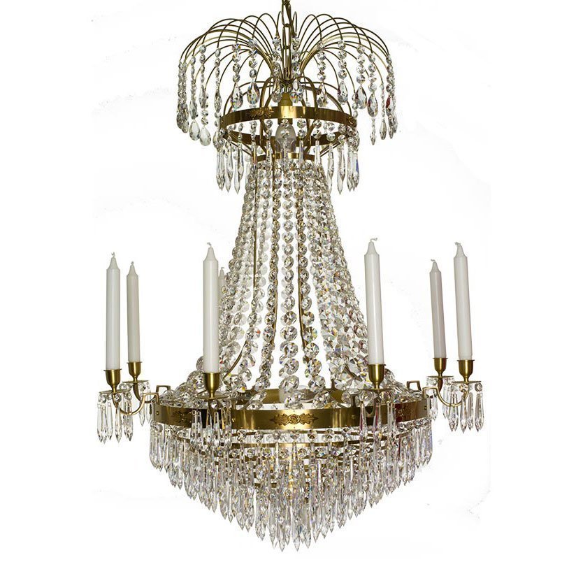 Empiretyyli syntyi Ranskassa 1800-luvulla ja sille oli ominaista muun muassa antiikkiset koristeaiheet, laakeriseppeleet, trofeet, siivekkäät voitonjumalat ja palmetit. Ruotsissa tyyliä kutsuttiin Karl Johan-tyyliksi. Nobel Empirekruunun on suunnitellut Tomas Krebs ja siinä on kevyt ja ylellinen muotoilu, minkä johdosta se sopii pienempiin huoneisiin. Upea katseenvangitsija Heracles sopii suuriin juhlatiloihin. Käsintehdyllä kattokruunulla voit muuttaa koko huoneen ilmettä eläväisemmäksi. Nobel on upea empirekruunu klassisella muotoilulla. Jokainen kruunun osa on valmistettu taitavana käsityönä. 8-haarainen kruunuvalaisin. Runko messinkiä. Pintakäsittely: cognac. 9 kpl E-14 lampunpidikettä 40W. Käsinhiotut prismat 1A-laatu. Leveys: 72 cm. Korkeus: 88 cm (ketju ei mukaan lukien). Paino: 18 kg. S/CE-merkitty. Hehkulamput eivät sisälly!.