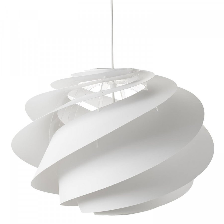 Swirl kattovalaisin merkiltä Le Klint, muotoilija ivind Slaatto. Kaunis kattovalaisin, joka antaa miellyttävää valoa. Swirl omaa tyylikkään, spiraalimaisen muotoilun, josta ei heijastu epämiellyttävästi valoa. Valaisimessa on avoin osa pohjassa lampulle ja tämän vuoksi sen voi asettaa korkealla roikkumaan. Esteettisesti kaunis ja sisustusyksityiskohta myös ei valaistuna. Valaisin on valkoista akryylia ja energiansäästö lamppu mukana.