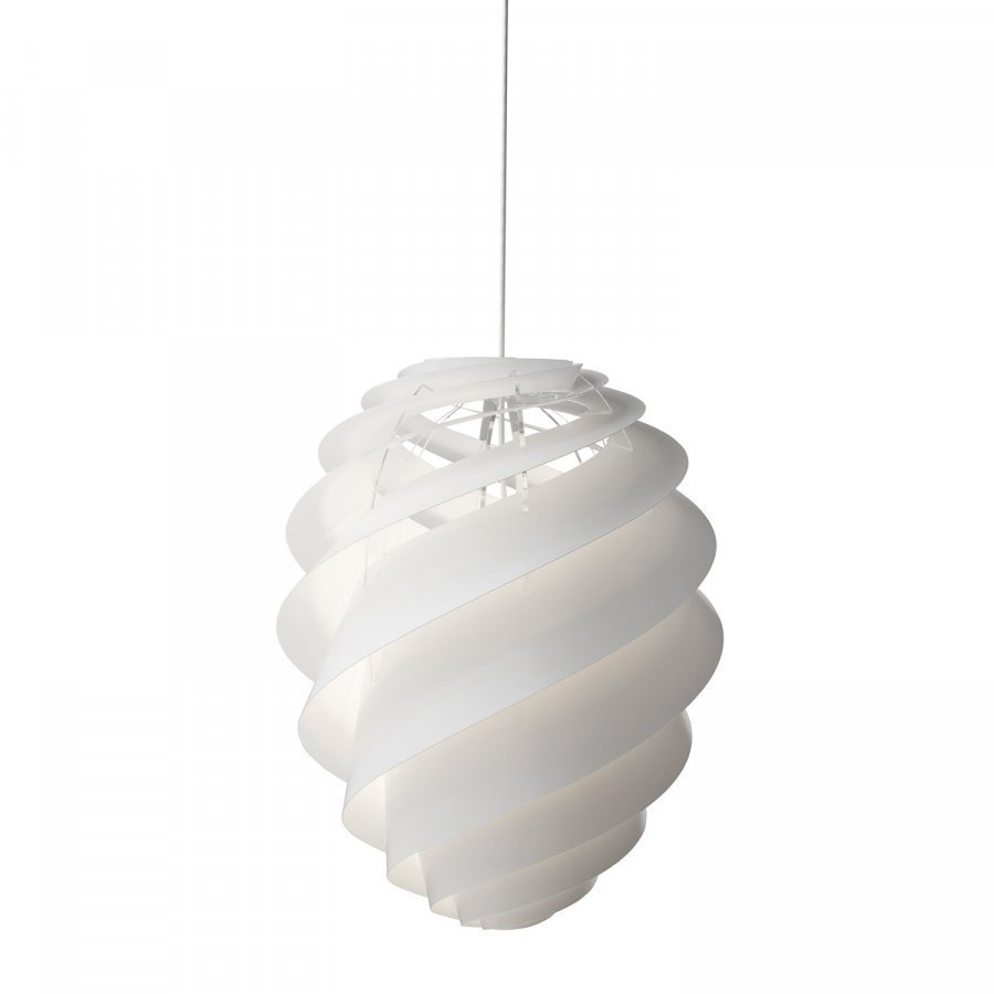 Swirl riippuvalaisin merkiltä Le Klint, suunnittelija Øivind Slaatto. Kaunis riippuvalaisin, joka luo miellyttävän valaistuksen. Swirl-valaisimessa on tyylikäs, spiraalimainen muotoilu, joka heijastaa valoa häikäisemättä. Valaisimen pohja on avoin, minkä vuoksi sen voi asettaa korkeallekin roikkumaan. Esteettisesti kaunis valaisin toimii hienona sisustusyksityiskohtana myös sammutettuna. Valaisin on valkoista akryylia ja mukana toimitetaan energiansäästölamppu.