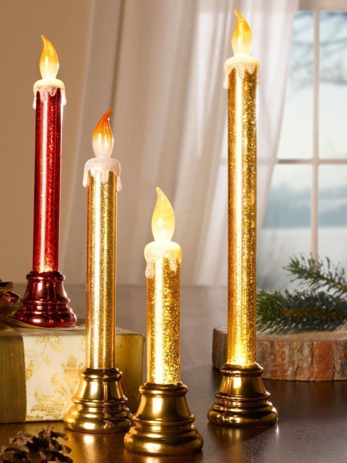 Tunnelmallinen kruunukynttilän muotoinen LED-kynttilä. Paristokäyttöinen: 3x LR44 (sis. toimitukseen). Pakkauksessa 3 erikorkuista kynttilää: 17 cm, 23 cm ja 30 cm.