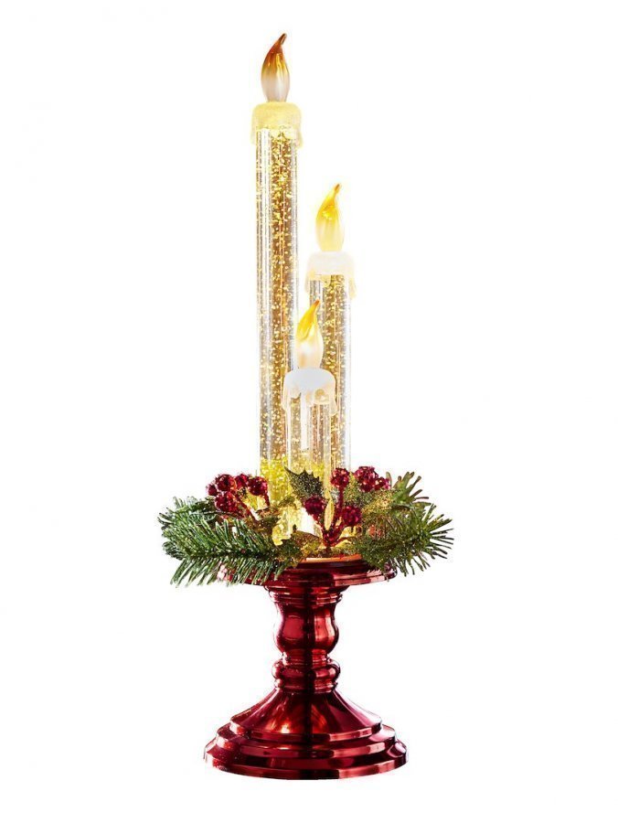 Suloinen LED-koristekynttilä. Valmistettu polyakryylista. Paristokäyttöinen, tarvitaan 4 x AAA-paristoa (eivät sisälly toimitukseen). Mitat K x L x S n. 37 x 10,5 x 10,5 cm.