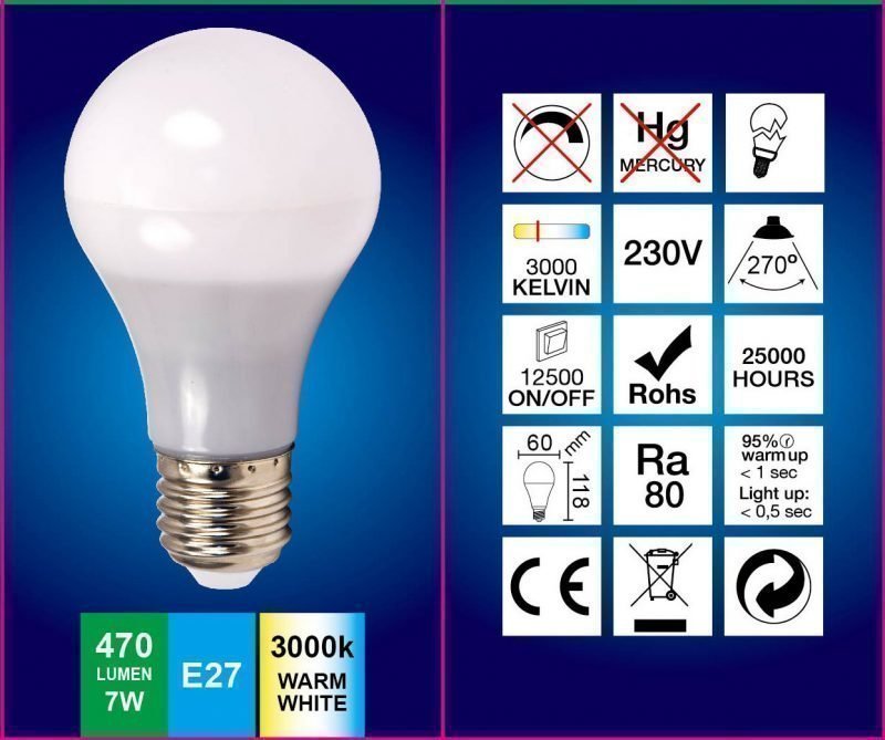 Kirjoita ensimmäinen arvio tuotteelle “LED-lamppu A60 FocusLight 7W 230V 3000K 470lm IP20 Ø 60mm valkoinen”