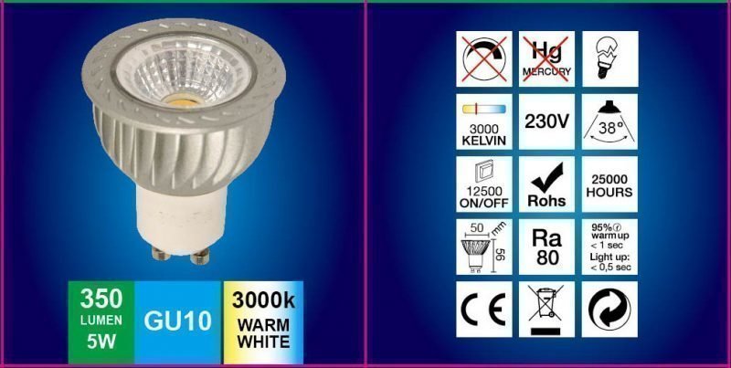 Kirjoita ensimmäinen arvio tuotteelle “LED-lamppu GU10 FocusLight 5W 230V 3000K 350lm IP20 Ø 50mm harmaa”