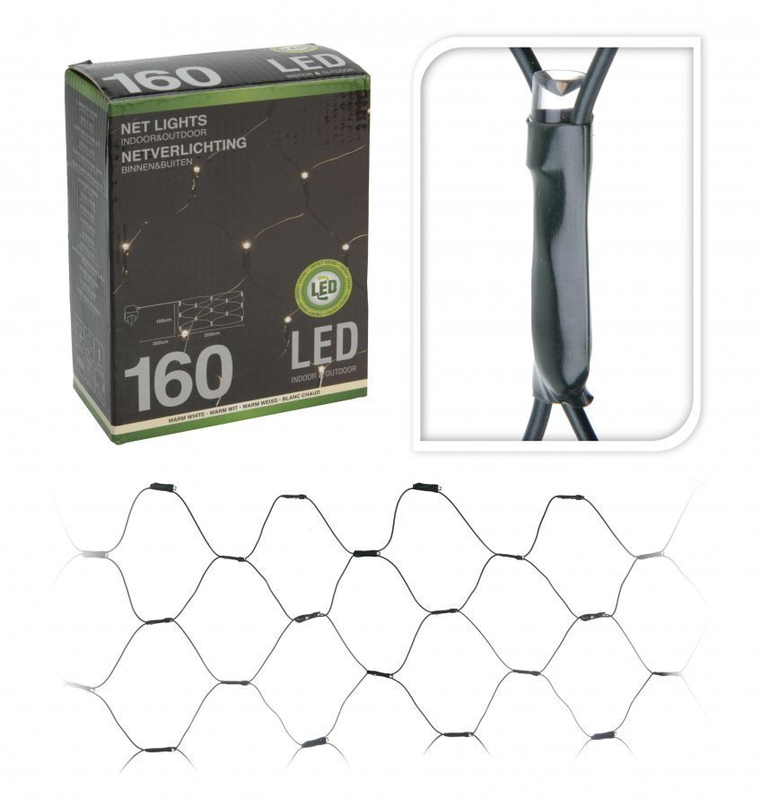 LED-valoverkko 200 x 100 cm ulkokäyttöön. – 160 lämminvalkoista polttimoa – 5 mm