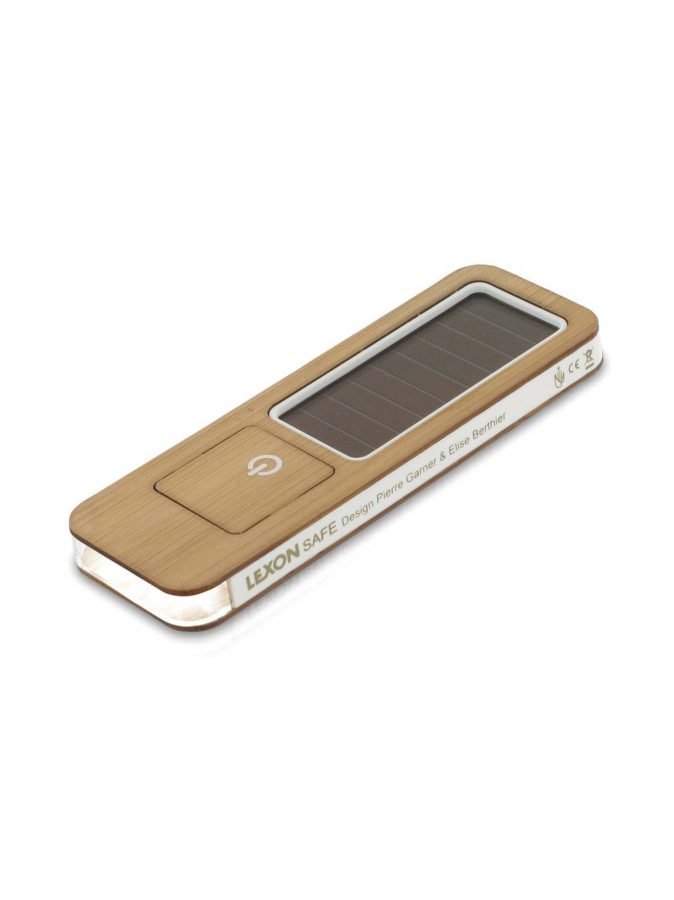 Taskukokoisessa tyylikkäässä taskulampussa on erittäin kirkas LED-valo ja aurinkokenno. Materiaali on bambua ja muovia. Mitat ovat 10 x 3,4 x 0,8 cm.