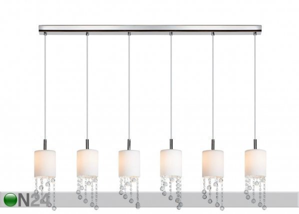 Koristeellinen riippuvalaisin – kromatut yksityiskohdat – kuvut ovat opaalilasia (matta) – 6xG9 sähkölamput… Lue lisää »