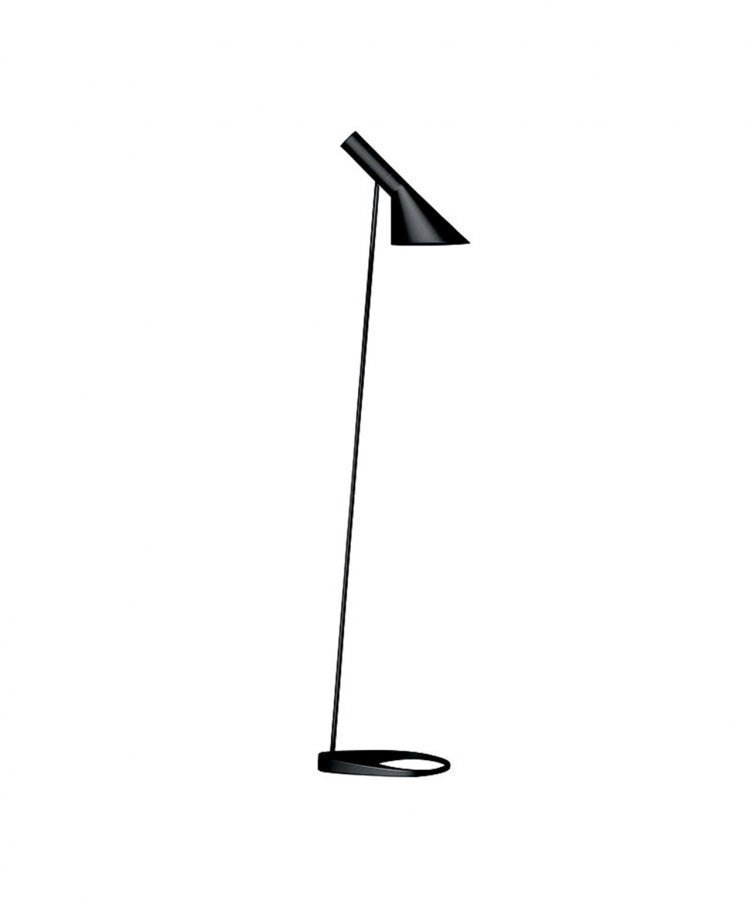 Design: Arne Jacobsen for Louis Poulsen. Konsepti: AJ Pöytävalaisimen on vuonna 1960 suunnitellut Arne Jacobsen Kööpenhaminan SAS Royal Hotelliin (Radisson Blu). Valaisin oli osa koko hotellin design Konseptia. Moni hotellin tuotteista on saavuttanut tänä päivänä designikonin statuksen, ja etenkin AJ-valaisimesta on tullut maailmankuulu. Arne Jacobsenin ikonisen designin 50-juhlavuoden kunniaksi Louis Poulsen on lanseerannut uuden dynaamisen väripaletin suosituille valaisimille: viisi uutta värivaihtoehtoa. Nämä uudet värivaihtoehdot ovat tarkoin valittuja Arne Jacobsenin päivitetystä väripaletista. Todella ainutlaatuinen ja maailmantunnettu valaisin. AJ Lattiavalaisimen valaisimenpää on karakterisen epäsymmetrisen muotoinen, joka määrittää valaistuksen ominaisuuden. AJ Lattiavalaisimen päätä voidaan kallistaa. Lattiavalaisimen jalan aukko tarjoaa designille eleganssia ja keveyttä. Uniikilla muotokielellään AJ Lattiavalaisin edustaa modernina klassikkona.