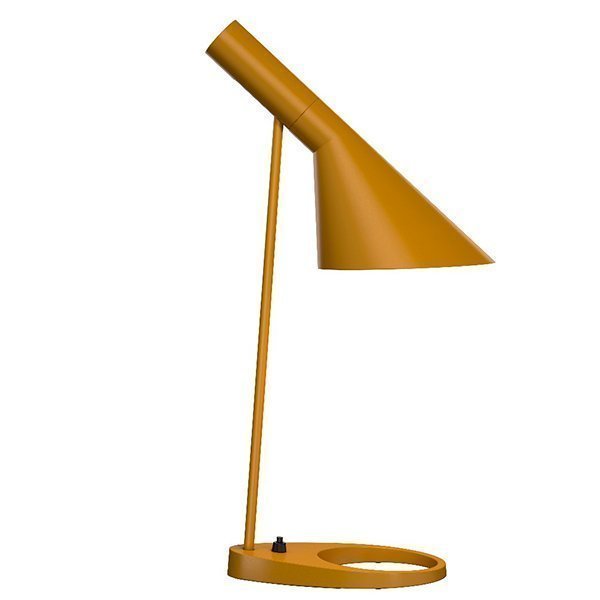 AJ-valaisimien 60-vuotisjuhlan kunniaksi Louis Poulsen lanseerasi sarjan pöytä-, lattia-, ja seinävalaisimen seitsemässä uudessa ja dynaamisessa värissä: okrankeltainen, keskiyönsininen, munakoiso, ruosteenpunainen, tummanharmaa, vaaleanharmaa ja tummanvihreä. Arne Jacobsen suunnitteli AJ-valaisimet alun perin Kööpenhaminan SAS Royal -hotelliin vuonna 1957. Sittemmin niistä on tullut tanskalaisia designikoneja ja Jacobsenin rakastetuimpia tuotteita. Suosion syynä on kenties valaisimien monikäyttöisyys, häikäisemätön valo ja ajaton, veistoksellinen muotokieli. Kartionmuotoinen varjostin on maalattu sisäpuolelta himmeän valkoiseksi, ja sen kulmaa on helppo säätää. AJ-pöytävalaisin sopii erinomaisesti sekä työ- että yöpöydälle.