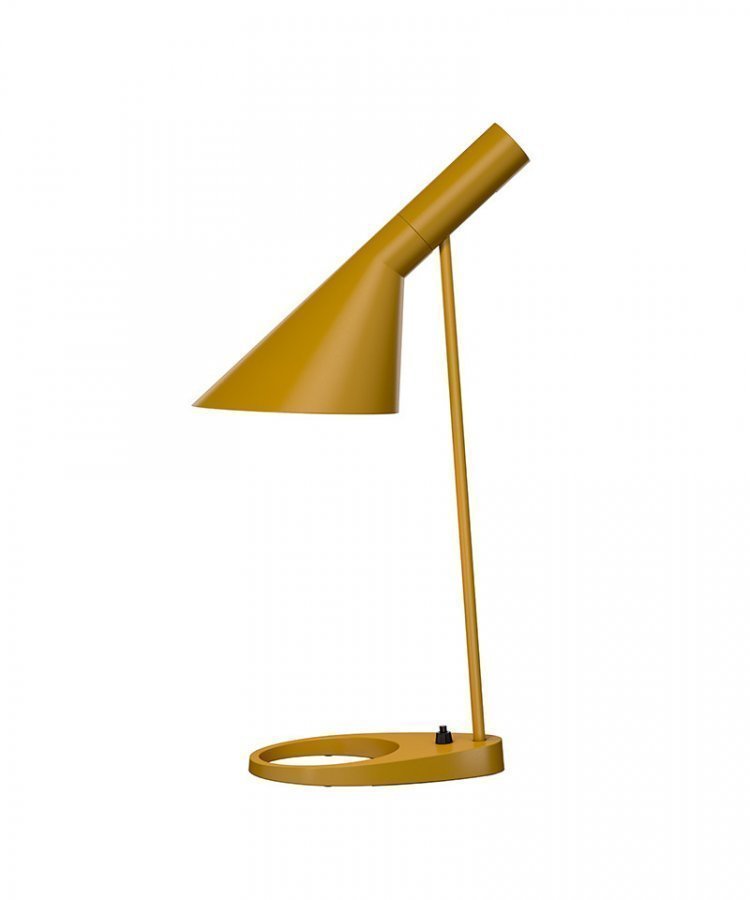 Design: Arne Jacobsen for Louis Poulsen. Konsepti: AJ Pöytävalaisimen on vuonna 1960 suunnitellut Arne Jacobsen Kööpenhaminan SAS Royal Hotelliin (Radisson Blu). Valaisin oli osa koko hotellin design Konseptia. Moni hotellin tuotteista on saavuttanut tänä päivänä designikonin statuksen, ja etenkin AJ-valaisimesta on tullut maailmankuulu. Arne Jacobsenin ikonisen designin 50-juhlavuoden kunniaksi Louis Poulsen on lanseerannut uuden dynaamisen väripaletin suosituille valaisimille: viisi uutta värivaihtoehtoa. Nämä uudet värivaihtoehdot ovat tarkoin valittuja Arne Jacobsenin päivitetystä väripaletista. Klassinen ja rakastettu pöytävalaisin jo yli 50 vuotta. AJ-pöytävalaisimen varjostin tarjoaa suunnatun, epäsymmetrisen valon. Valaisinosaa voidaan suunnata mahdollisimman hyvän valaistuksen saamiseksi.