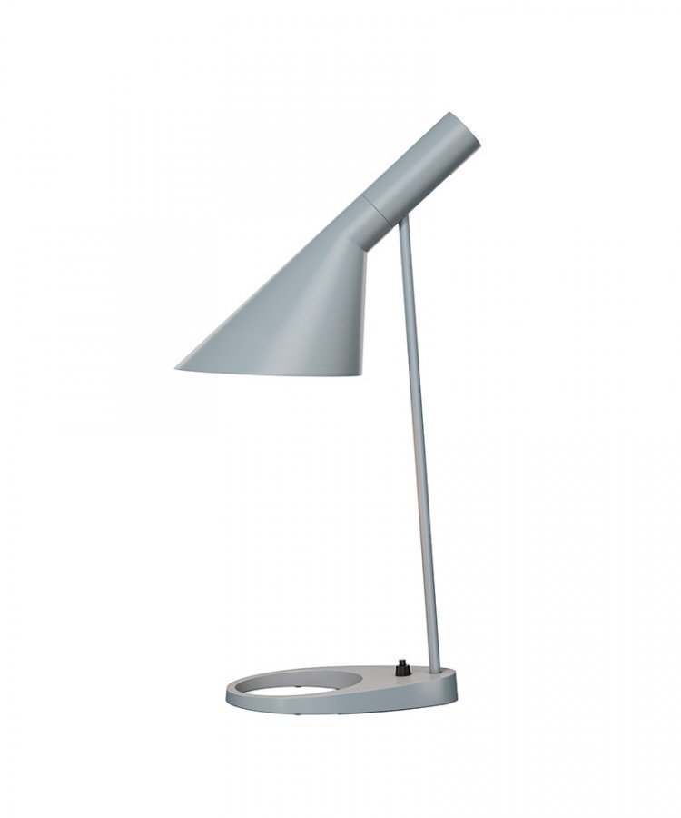 Design: Arne Jacobsen for Louis Poulsen. Konsepti: AJ Pöytävalaisimen on vuonna 1960 suunnitellut Arne Jacobsen Kööpenhaminan SAS Royal Hotelliin (Radisson Blu). Valaisin oli osa koko hotellin design Konseptia. Moni hotellin tuotteista on saavuttanut tänä päivänä designikonin statuksen, ja etenkin AJ-valaisimesta on tullut maailmankuulu. Arne Jacobsenin ikonisen designin 50-juhlavuoden kunniaksi Louis Poulsen on lanseerannut uuden dynaamisen väripaletin suosituille valaisimille: viisi uutta värivaihtoehtoa. Nämä uudet värivaihtoehdot ovat tarkoin valittuja Arne Jacobsenin päivitetystä väripaletista. Klassinen ja rakastettu pöytävalaisin jo yli 50 vuotta. AJ-pöytävalaisimen varjostin tarjoaa suunnatun, epäsymmetrisen valon. Valaisinosaa voidaan suunnata mahdollisimman hyvän valaistuksen saamiseksi.
