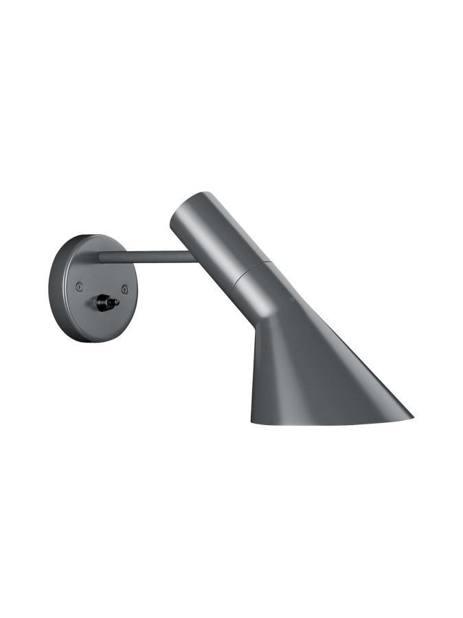 Arne Jacobsen suunnitteli yksinkertaisen tyylikkään AJ-valaisimen vuonna 1960 Kööpenhaminan Radisson SAS royal -hotelliin. Ajattoman muotokielensä ansiosta valaisin sopii hyvin monenlaiseen ympäristöön. Kallistuva varjostin voidaan säätää haluttuun asentoon ja kohdistaa valo juuri sinne, missä sitä tarvitaan. Valaisin luo suoran valon, joten se soveltuu erinomaisesti lukuvaloksi. Valonlähde 1 x 40W, D45, E14. Varjostimen pituus 25 cm, korkeus 18 cm ja syvyys 34 cm, johdon pituus 2,4 m.