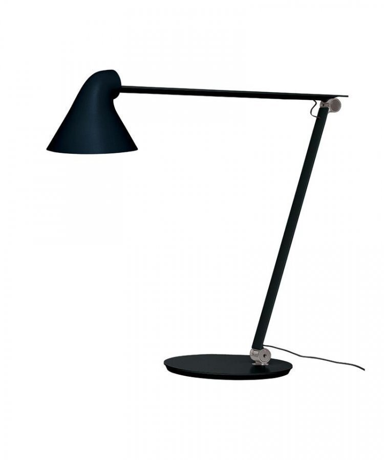 Design: Nendo. for Louis Poulsen. Konsepti: NJP-pöytävalaisimen suunnitteli Oki Sato japanilaisesta muotoilustudio Nendosta. NJP-pöytävalaisin on uudelleentulkinta klassisesta valaisimesta. Valaisimen yksinkertainen ja puhdas ulkoasu paljastaa sen toiminnalliset ominaisuudet, jotka yhdessä luovat ilmaisun, joka selittää itse itsensä. Valaisimen toiminnallisuus on tarkkaan mietitty. Varren kaksi niveltä mahdollistavat merkittävän joustavuuden ja niiden ansiosta valo on helppo suunnata haluttuun paikkaan. Ylimääräisenä yksityiskohtana nivelten jouset ovat näkyvissä, mikä lisää valaisimen näyttävyyttä. Aukko varjostimen takaosassa on mielenkiintoinen yksityiskohta, joka lisää myös LED-osan tuuletusta. Rakenne antaa suoraa vaakasuoraa häikäisemätöntä valoa, ja heijastaa osan valosta taaksepäin valaistakseen valaisimen varren yläosan. Rakenteen ergonominen suunnittelu muovaa valoa ja auttaa varmistamaan parhaan mahdollisen valon suuntauksen. Yksinkertainen mekanismi antaa valaisimelle laajoja liikeratoja, joten valo voidaan suunnata suoraan työpisteeseesi. Varjostin on valkolakattu sisäpuolelta mahdollistaakseen mukavan hyvin hajautuneen valaistuksen.