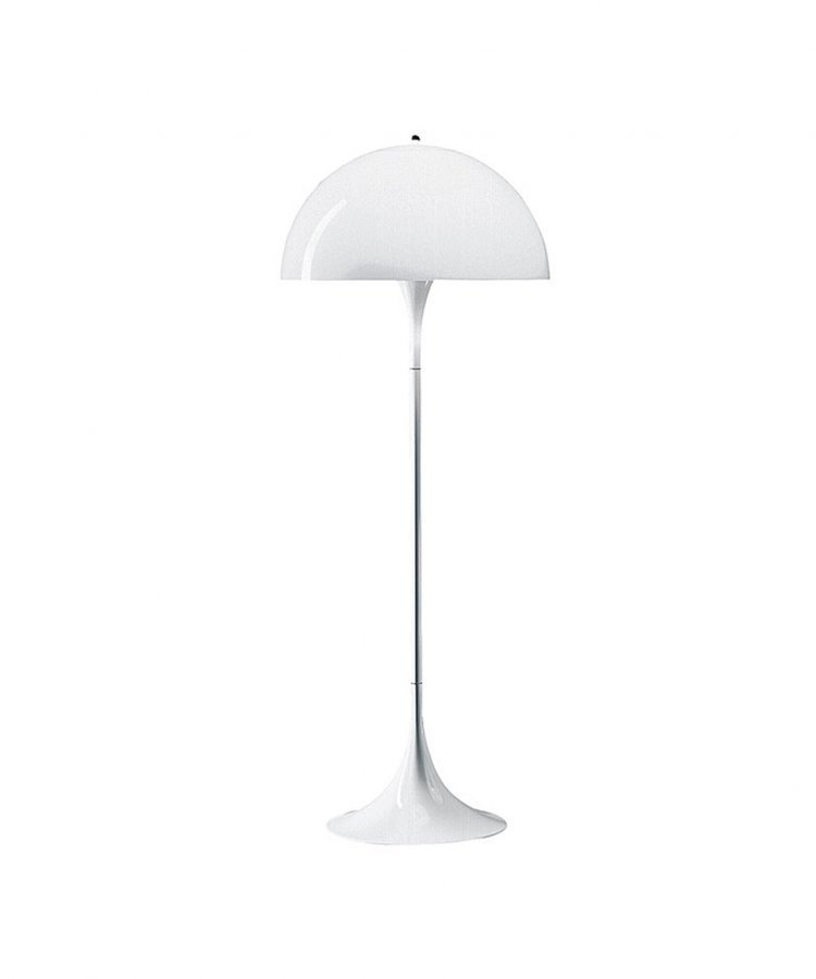 Design: Verner Panton for Louis Poulsen. Konsepti: Panthella- pöytä- ja lattiavalaisimet suunnitteli vuonna 1971 Verner Panton. Valaisimet ovat Pantonin suosituimpia valaisimia. Valaisimen orgaaninen muoto sekä vahvat värit, joissa valaisin alunperin lanseerattiin, ovat ominaisia Verner Pantonin suunnittelulle. Panton halusi luoda valaisimen, jossa sekä pohja että kupu toimivat valonheijastimina. Aikaisemmin valaisimesta oli saatavilla eri värejä – nykyään saatavilla on vain valkoinen. Panthella- lattiavalaisimella on orgaaninen ja tasapainoinen muotonsa, jonka Verner Panton loi vuonna 1971. Valaisin tuottaa hajanaisen ja miellyttävän valon, kiitos sen pohjan ja kuvun, jotka molemmat toimivat valonheijastimina – todellinen esimerkki valaisimen toiminnoista.