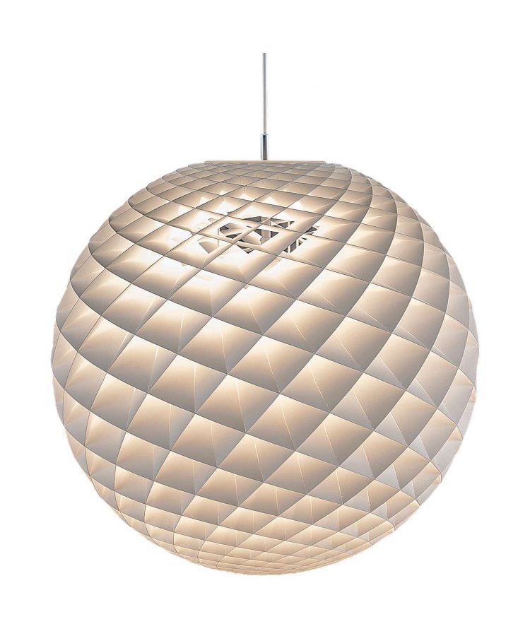 Design: Øivind Slaato for Louis Poulsen. Konsepti: Patera 900 riippuvalaisin on hienostuneesti valaistu pallo, joka koostuu pienistä timantinmuotoisista kennoista. Jokainen kenno on huolellisesti suunniteltu vangitsemaan valon ja kiteyttämään valonlähteen niin, että sitä ei voi nähdä yli 45 asteen kulmasta. Jokainen kenno valaistaan ja alle 45 asteen kennot ovat avoimia, joten niistä valoa heijastuu alaspäin. Osa valosta heijastetaan ylöspäin kohti kattoa. Patera on saatavilla eri kokoisina 450, 600 ja 900 mm (halkaisija). Patera 900 soveltuu erityisen hyvin ripustettavaksi käytävälle. Jos haluat suuren ja näyttävän valaisimen, sitä voi käyttää myös ruokailupöydän yläpuolella, kunhan katto on riittävän korkea. Patera sopii täydellisesti pohjoismaisiin yksinkertaisiin muotoihin sekä vaaleisiin väreihin. Valaisimeen kuuluu kattokuppi sekä neljämetrinen ripustusvaijeri.