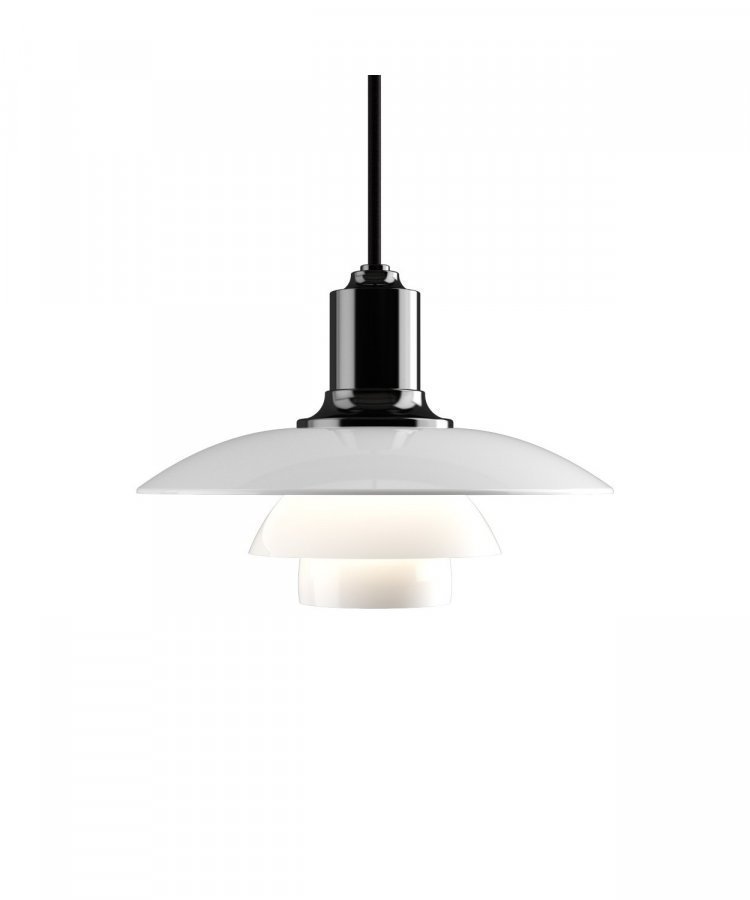 Design: Poul Henningsen for Louis Poulsen. Konsepti: PH 2/1 Riippuvalaisin on osa kolmevarjostimisten valaisimien joukkoa, johon tällä hetkellä kuuluu yhteensä 18 eri valaisinta. Näistä kolme on suunniteltu ulkokäyttöön. Poul Henningsen loi kolmevarjostimisen valaisimen vuosina 1925-1926, jolloin hän yhdessä Louis Poulsenin kanssa suunnitteli ensimmäiset valaisimet Pariisissa järjestettyyn näyttelyyn. Läpi koko elämänsä PH pyrki luomaan häikäisemättömän ja pehmeän valon, joka on samalla taloudellinen. Niinpä PH ei luonut pelkästään valaisinta vaan kokonaisen valaisinjärjestelmän. Vuosien saatossa siihen liittyen on valmistettu noin tuhat erilaista valaisinmallia. PH-valaisimien numerot viittaavat niiden varjostimien kokoon. Jokaiseen ylävarjostimeen kuuluu siihen liittyvä sarja alempia varjostimia. 2/2, eräs ’puhtaimmista’ malleista, sisältää 20 cm kokoisen ylävarjostimen sekä siihen liittyvät alavarjostimet. PH 2/1 -valaisimessa on 20 cm ylävarjostin, mutta sen keskimmäinen ja alin varjostin ovat mallista 1/1. PH 2/1 -valaisimen heijastava monivarjostinjärjestelmä perustuu logaritmisen spiraalin periaatteeseen – valonlähteen keskipiste sijaitsee spiraalin keskellä, ja se tuottaa laajalle levittäytynyttä ja häikäisemätöntä valoa. PH 2/1 Riippuvalaisin tuottaa alaspäin suunnattua valoa.