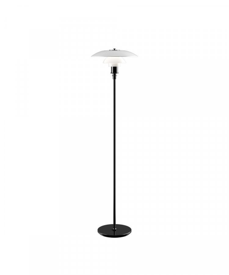 Design: Poul Henningsen for Louis Poulsen. Konsepti: PH 3½/2½ Lattiavalaisin on osa kolmevarjostimisten valaisimien joukkoa, johon tällä hetkellä kuuluu yhteensä 18 eri valaisinta. Näistä kolme on suunniteltu ulkokäyttöön. Poul Henningsen loi kolmevarjostimisen valaisimen vuosina 1925-1926, jolloin hän yhdessä Louis Poulsenin kanssa suunnitteli ensimmäiset valaisimet Pariisissa järjestettyyn näyttelyyn. Läpi koko elämänsä PH pyrki luomaan häikäisemättömän ja pehmeitä varjoja tuottavan valon, joka voidaan suunnata minne tahansa, missä sitä tarvitaan. Niinpä PH ei luonut pelkästään valaisinta vaan kokonaisen valaisinjärjestelmän. Vuosien saatossa siihen liittyen on valmistettu noin tuhat erilaista valaisinmallia. PH-valaisimien numerot viittaavat niiden varjostimien kokoon. Jokaiseen ylävarjostimeen kuuluu siihen liittyvä sarja alempia varjostimia. PH 3½/2½ -valaisimessa on noin 35 cm ylävarjostin, ja keskimmäinen ja alin varjostin ovat sarjasta 2½. PH 3½/2½ -valaisimeen suunniteltiin heijastava monivarjostinjärjestelmä, joka perustuu logaritmisen spiraalin periaatteeseen – valonlähteen keskipiste sijaitsee spiraalin keskellä, ja se tuottaa laajalle levittäytynyttä ja häikäisemätöntä valoa. PH 3½/2½ Lattiavalaisimen suupuhallettu opaalilasi on kiiltävä ulkopuolelta ja hiekkapuhallettu matta sisäpuolelta.