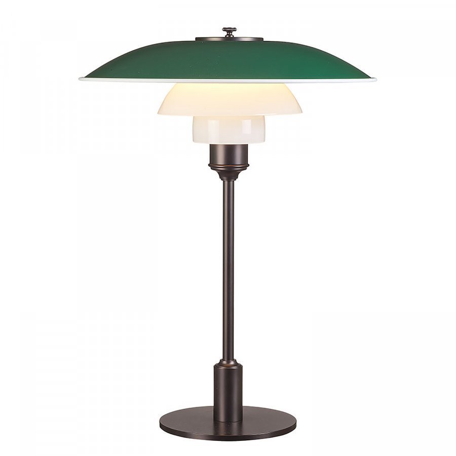 PH 31/2-21/2 pöytävalaisin merkiltä Louis Poulsen, suunnittelija Poul Henningsen. PH 31/2-21/2 pöytävalaisimen suunnittelun lähtökohtana on heijastava varjostinjärjestelmä, jonka muotoilu perustuu logaritmiseen spiraaliin, jonka keskellä on valonlähde. Varjostimet ovat suupuhallettua, kolmikerroksista opaalilasia, jonka kiiltävä ulkopinta ja hiekkapuhallettu sisäpinta luovat pehmeän ja tasaisen valaistuksen. Historia tuotteen takana: PH 3/2 pöytävalaisin on PH 3 -varjostinperheen jäsen. PH 3 -valaisimen perusajatus syntyi muutaman talvikuukauden aikana 1925-1926 Kööpenhaminan Forum-näyttelyhallia varten. Poul Henningsen (PH) kommentoi uutta valaisintaan näin vuonna 1926: ”Todellinen innovaatio PH-valaisimessa on, että se tuottaa sekä häikäisemätöntä että taloudellista valoa. On helppoa luoda häikäisemätöntä valoa (epäsuoraa ja voimakkaasti suunnattua valoa) jos sallitaan, että osa valosta haaskataan. On yhtä lailla helppoa kehittää valaisimia, jotka ovat erittäin tehokkaita, jos niiden aiheuttama häikäisy jätetään huomioimatta (voimakas peiliheijastus jne. ). Mutta sekä taloudellisen että häikäisemättömän valon luominen on taidetta.
