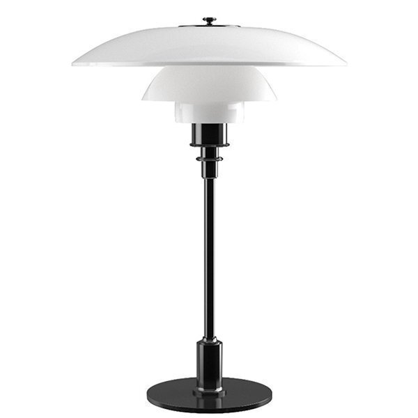 Louis Poulsenin PH 3/2 -pöytävalaisin kuuluu Poul Henningsenin suunnittelemaan valaisinperheeseen, jonka jäseniä yhdistää muotoilijan 1920-luvulla kehittämä, innovatiivinen 3-varjostinjärjestelmä. Kolme porrastettua opaalilasivarjostinta hiekkapuhalletuilla sisäpinnoilla muodostavat yhdessä kokonaisuuden, jonka ansiosta klassinen valaisin luo tilaan miellyttävää, häikäisemätöntä valoa ja toimii myös katseenkiinnittävänä sisustuselementtinä. Mustaksi metalloitu jalka antaa PH 3/2 -pöytävalaisimelle modernin, teollisen olemuksen.